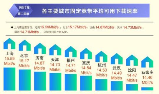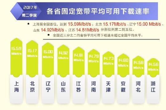日前,寬帶發(fā)展聯(lián)盟發(fā)布了第 16 期《中國寬帶速率狀況報告》(2017 年第二季度)。報告顯示 2017 年第二季度我國固定寬帶網(wǎng)絡(luò)平均下載速率達(dá)到 14.11Mbit/s,比 2017 年第一季度提高了1.1Mbit/s,同比去年第一季度提升了 34.8%。自 2015 網(wǎng)絡(luò)“提速降費”工作開展以來,我國固定寬帶可用下載速率連續(xù) 10 個季度持續(xù)提升,總提升幅度達(dá)到 3.3 倍。同時,我國移動寬帶用戶使用 4G 網(wǎng)絡(luò)訪問互聯(lián)網(wǎng)時的平均下載速率達(dá)到 13.46Mbit/s,環(huán)比 2017 年第一季度也有 14.2%的提升。